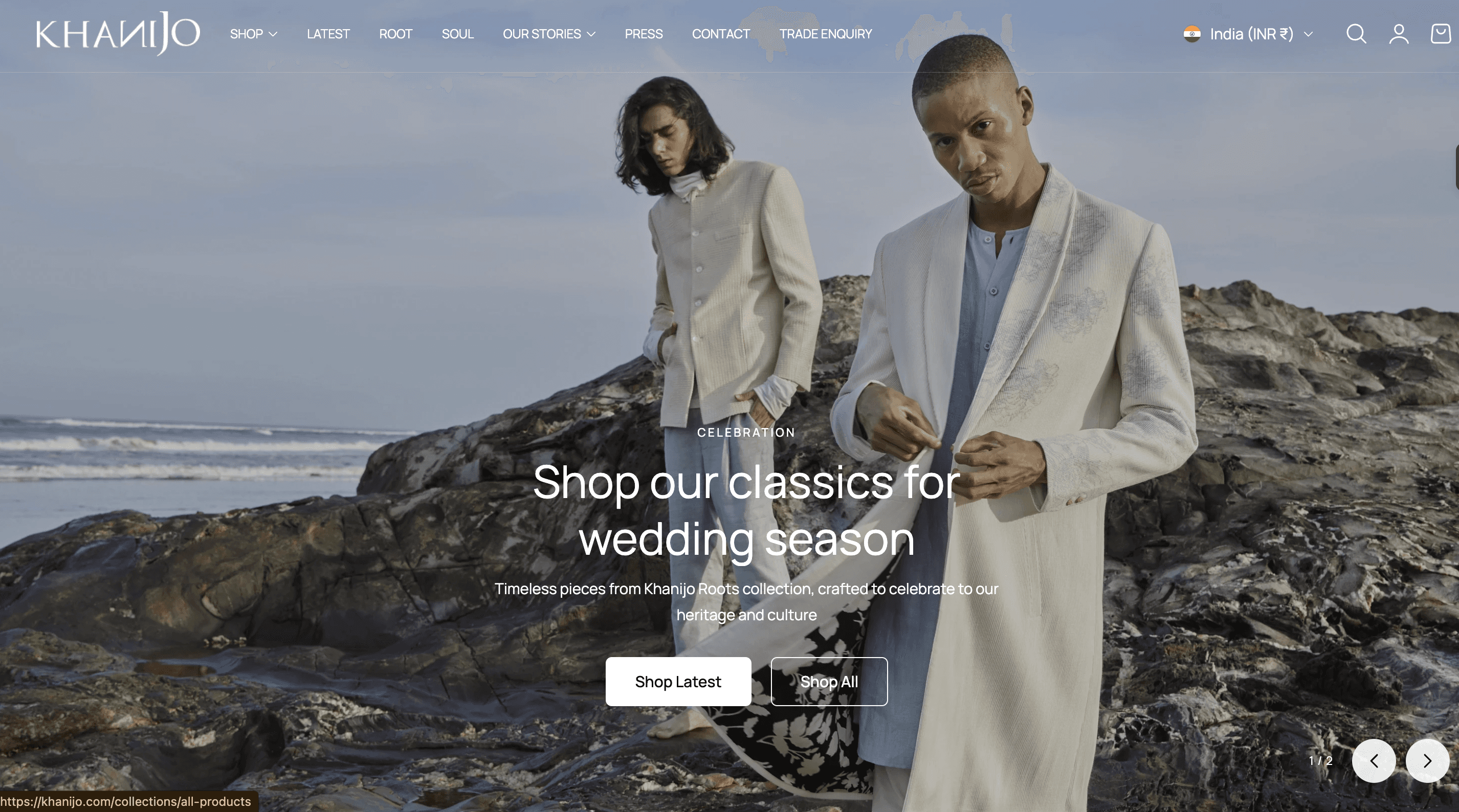 We quickly migrated the domain and set up a landing page on Shopify to catch user information and create a waitlist for when the Khanijo website would go live again. We sat and organized all of the data from the last 10 years of Khanijo to be properly showcased on the website. We created a proper sitemap, designed, and developed the website within 3 weeks to get it live with all the features, brand pages, products, and a design experience suitable for a luxury brand