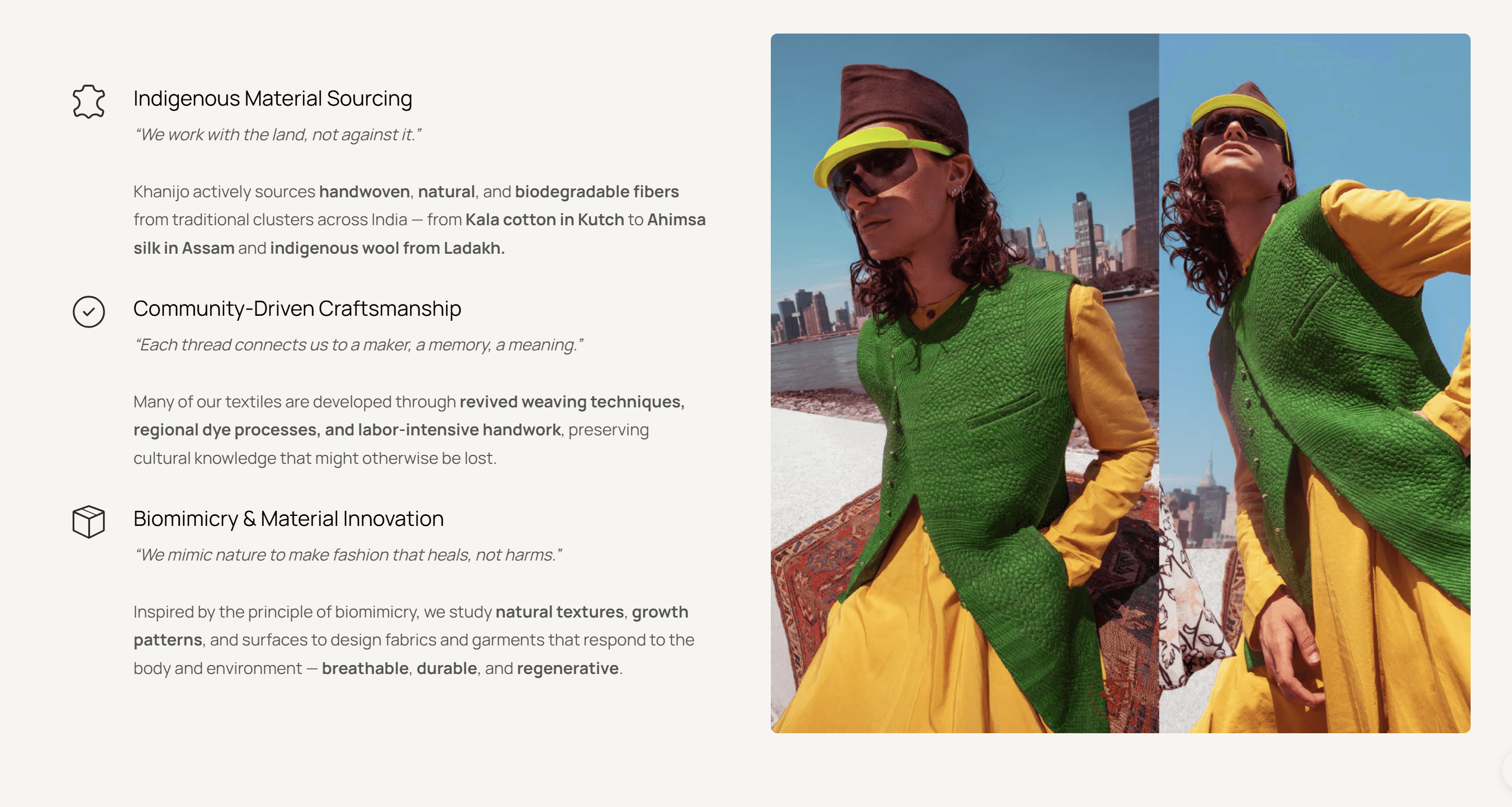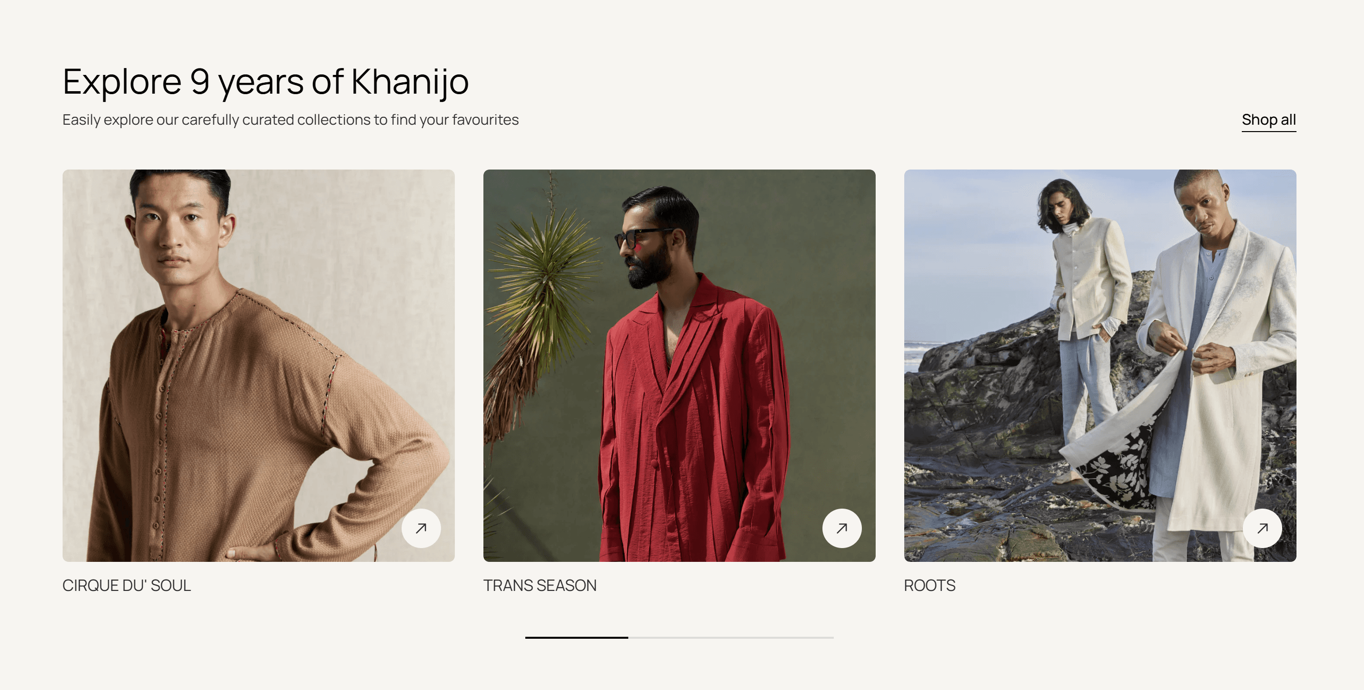 1. The earlier Khanijo website was based on WordPress, and due to technical problems, the website was infected with bugs which disabled the buying and checkout features. Instead of fixing the old website, which needed a revamp anyway, Khanijo decided to move to Shopify. But since the problem with the WordPress website had already stopped the online business, we had a strict timeline. Every day without a working website meant a day of losing business. 2. The earlier team working on the website prior to Beond jumped directly into Shopify development without any strategy, sitemap, or design, which led to the final website being delayed for months. When we took over the project, we did a full diagnosis of the progress and decided to start the work from scratch. 3. With a great history of over 10 years, Khanijo had over 400 products with multiple types of fabrics, making processes, colors, sizes, and styles that needed to be properly organized into tags and collections for a smooth user experience.